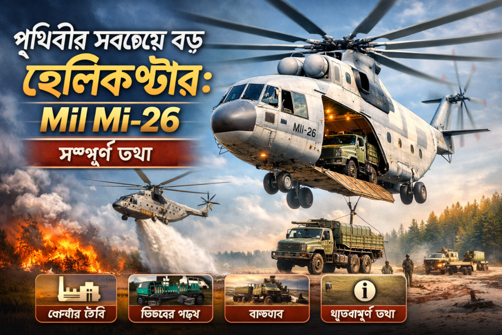পৃথিবীর সবচেয়ে বড় হেলিকপ্টার হিসেবে পরিচিত Mil Mi-26 আধুনিক বিমান প্রযুক্তির একটি অসাধারণ উদাহরণ। সহজ ভাষায় বললে, এটি এমন একটি হেলিকপ্টার যা খুব ভারী জিনিসও সহজে বহন করতে পারে। পৃথিবীর সবচেয়ে বড় হেলিকপ্টার হওয়ার কারণে Mil Mi-26 সামরিক ও বেসামরিক—দুই ক্ষেত্রেই খুব গুরুত্বপূর্ণ ভূমিকা পালন করে।