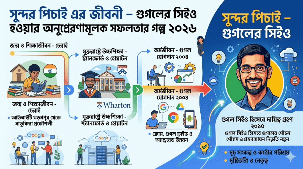 • সুন্দর পিচাই এর জীবনী – গুগলের সিইও হওয়ার অনুপ্রেরণামূলক সফলতার গল্প ২০২৬