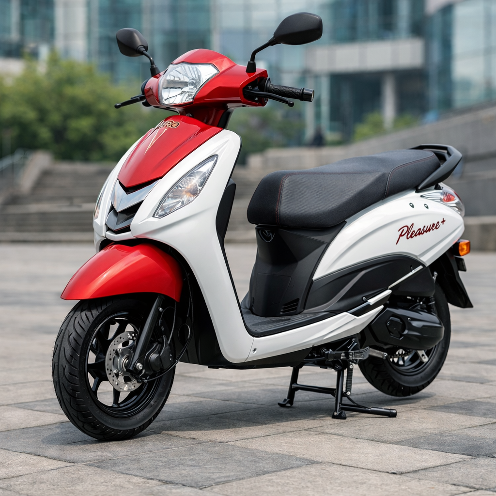 Hero Pleasure Plus একটি হালকা ও কমপ্যাক্ট স্কুটি। শহরের ছোট রাস্তায় চলাচলের জন্য এটি খুবই সুবিধাজনক।